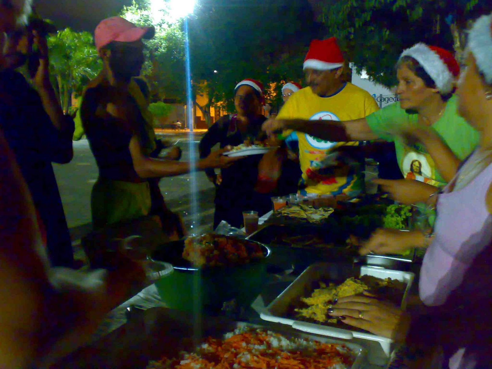 O Grupo de Oração São José, durante a realização de sua Novena de Natal, definiu como propósito de atitude concreta a realização de uma Ceia de Natal para pessoas que moram nas ruas do centro de nossa cidade. A Ceia de Natal com o Irmão de Rua aconteceu na noite o último dia 23/12 (quinta-feira) e teve o apoio e participação de membros do Grupo São José e também de outras pastorais e movimentos de nossa paróquia. A equipe formada saiu do centro de pastoral em direção à Praça da Bandeira onde iniciou a distribuição da ceia e logo após seguiu para a Praça José de Alencar, onde foi possível servir a ceia para mais moradores de rua.