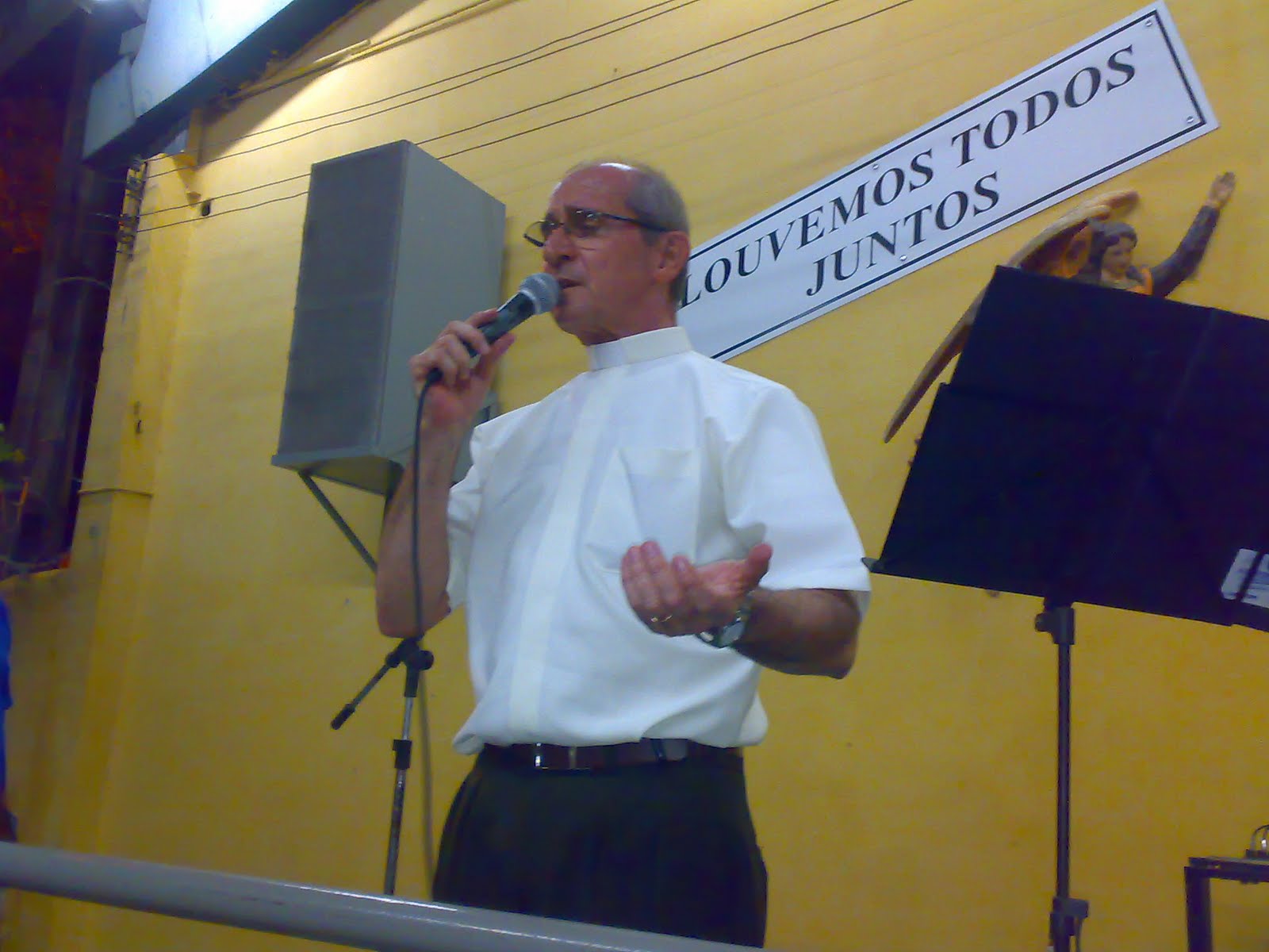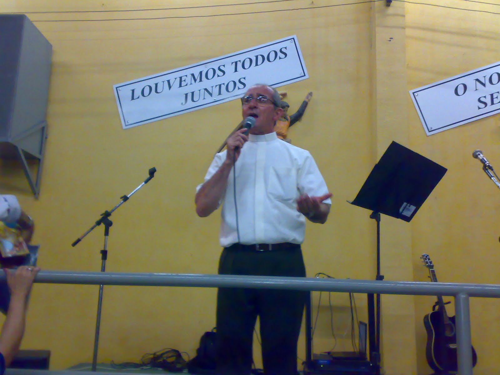Após a missa, todos puderam apreciar as belíssimas canções do Pe. Peixoto, que animou a feirinha no estacionamento coberto do centro pastoral. Confira abaixo o recado do Padre Peixoto para todos nós que estamos participando desta Semana Eucarística.