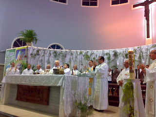 Na noite de ontem (dia 21) a Paróquia São Benedito acolheu a comunidade da Paróquia Santíssima Trindade, do Conjunto José Walter – nossa paróquia irmã de congregação sacramentina – para juntos celebrarem o terceiro dia da 73º Semana Eucarística. Com o tema de reflexão “A Natureza Pede a Nossa Colaboração”, a celebração foi presidida pelo pároco da Santíssima Trindade – Pe. Ruy Mendes, sss – tendo toda sua liturgia conduzida por membros dessa comunidade. Confira abaixo algumas fotos e a mensagem deixada pelo Padre Ruy para todos os irmãos e irmãs que estão participando desta Semana Eucarística.