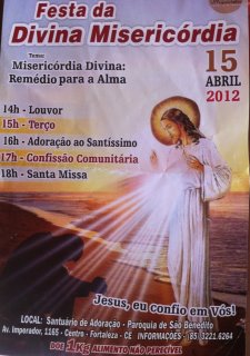 A Paróquia São Benedito realizará amanhã, dia 15/04, a Festa da Divina Misericórdia, a partir das 14 horas, na Av. do Imperador, 1165 – Centro. A programação contará com louvor, Terço da Misericórdia, Adoração ao Santíssimo Sacramento, Confissão Comunitária e encerramento com a Santa Missa.