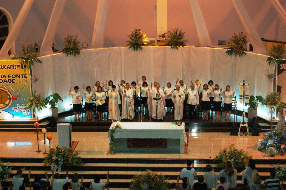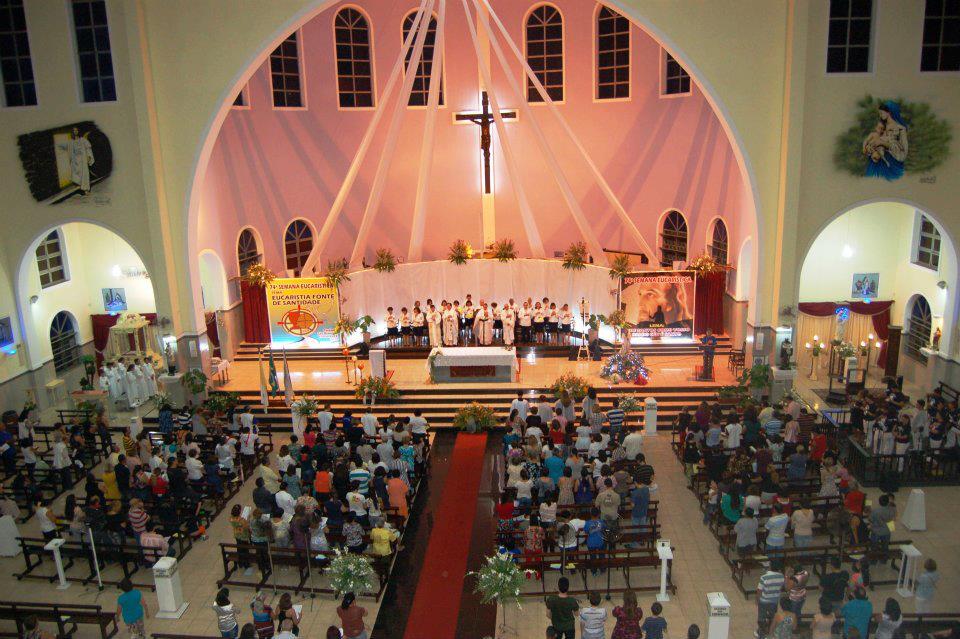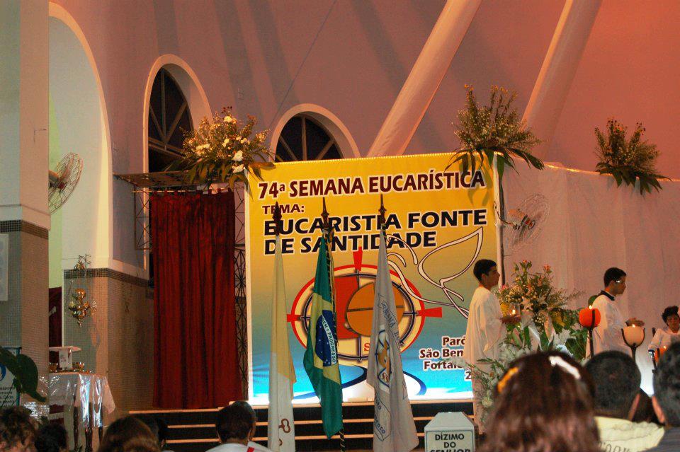 Teve início no último dia 03 (domingo) a 74ª Semana Eucarística da Paróquia São Benedito (Fortaleza-CE). A Semana Eucarística se destaca dentre as outras pois nela, todos os anos, podemos celebrar e refletir o maior tesouro que existe dentro da Igreja Católica – A Eucaristia – tendo como tema neste semana ano “Eucaristia Fonte de Santidade”. Logo após a procissão com o Santíssimo Sacramento pelas ruas próximas a igreja, a celebração eucarística de abertura foi presidida pelo nosso pároco – Pe. Jackson Frota, sss. A programação da Semana Eucarística terá seu encerramento no dia 10/06 (domingo). Confira abaixo algumas fotos.