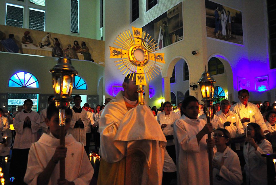 O quarto dia da 74º Semana Eucarística da Paróquia São Benedito (06/06) foi marcado pelo Lucernário: O Ofício da luz e vigília de Corpus Christi. Tendo como presidente da celebração o Padre Marcelo Silva, sss (Belo Horizonte-MG), o lucernário é um ritual que surgiu desde os primeiros tempos da Igreja. Confira abaixo vídeo e fotos, pelas quais agradeço às minhas amigas Iracema Monteiro e Liduína Araújo.