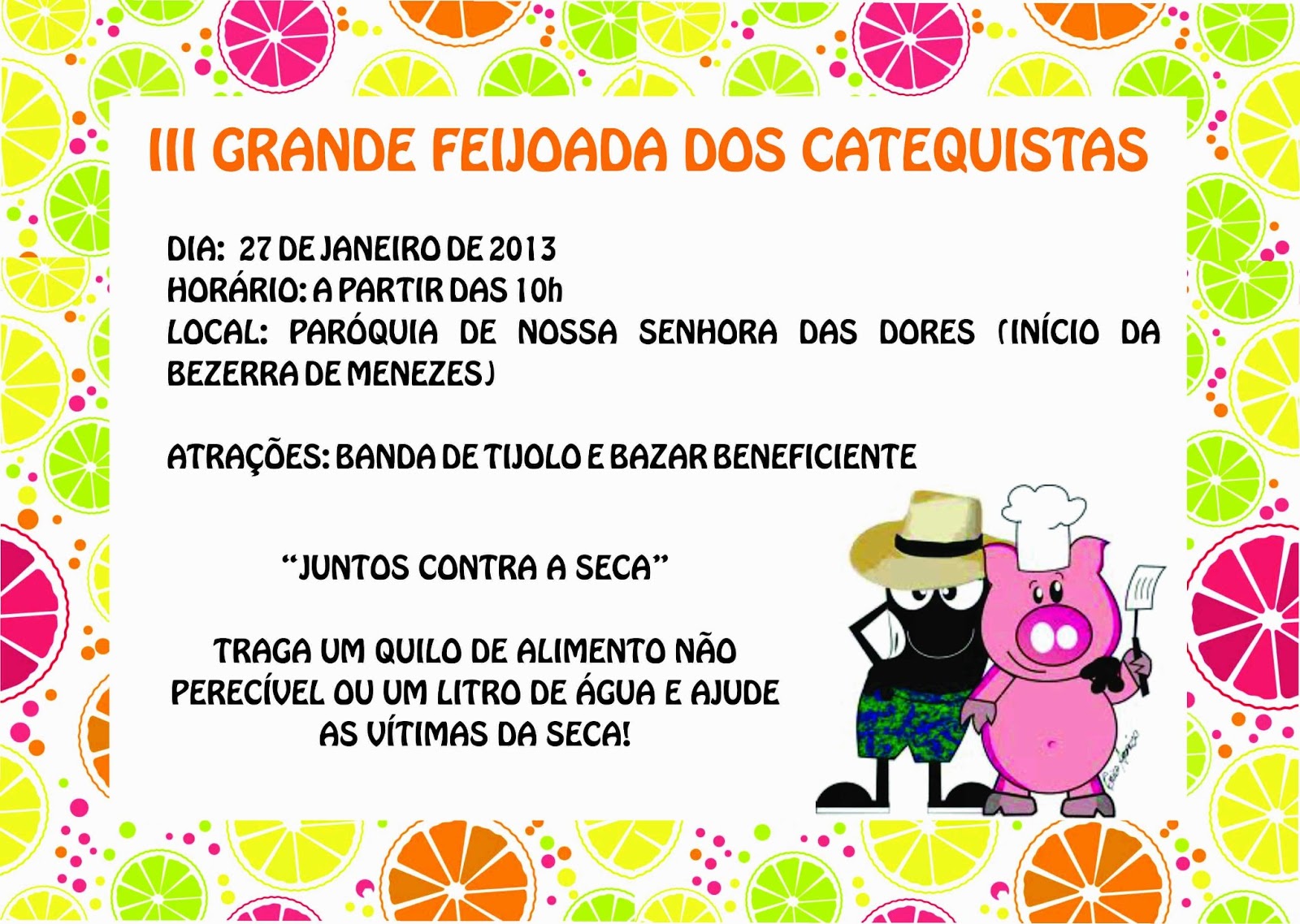 Obrigada Adriano pela dedicação. Contamos com a presença de todos os catequistas, em especial os que fazem parte da Região Metropolitana São José, e demais irmãos de Fé.O Convite custa apenas R$ 10,00 (Dez reais) estarão disponiveis com os catequistas da Região ou nos procurem. Agradecemos desde já e na certeza que nos encontraremos no dia 27/01.