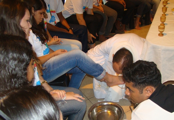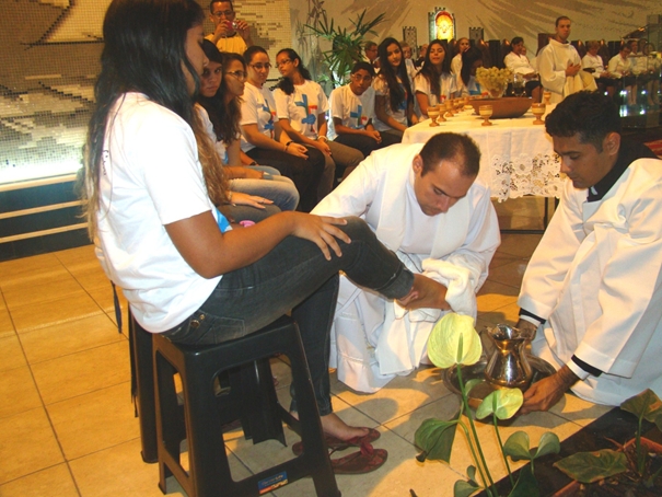 Com o mesmo gesto de Cristo, que lavou os pés dos discípulos num sinal de humildade, solidariedade e igualdade entre os homens, Pe. Jackson lavou e beijou os pés de 12 jovens, em um sinal de que a Igreja atual tem voltado os olhos para a juventude.
