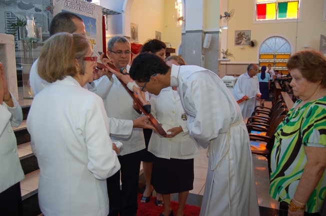 Nesta Sexta-Feira Santa (29), segundo momento do Tríduo Pascal, celebramos, na Paróquia São Benedito, a Paixão, Morte e Sepultamento do Senhor. Todos ficaram atentos à leitura da Sagrada Escritura, depois da homilia, Padre Jackson Frota, sss fez a oração universal; na segunda parte da celebração, a Comunhão Eucarística e a adoração da Santa Cruz. Os muitos fiéis que estavam presentes à celebração se organizaram em uma grande fila para o beijo da Cruz.