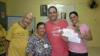 Que os casais Alberto e Roseani, João Victor e Renata, Marcondes e Catarina, Gustavo e Sabrina, Emerson e Beatriz, Carvalho e Júlia, Reginaldo e Silvana, Davi e Emanuele, tenham um feliz matrimônio e que a Sagrada Família de Nazaré seja o modelo de família a ser seguido por eles. Confira abaixo algumas fotos e vídeos do encontro. E viva os noivos!!!