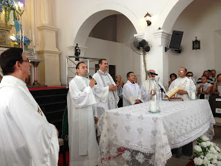 No terceiro dia do Tríduo, nossos religiosos sacramentinos se reuniram em celebração, na capela de Nossa Senhora do Patrocínio, no Centro de Fortaleza, onde foi entronizada uma imagem de SPJE, capela que hoje está sob a responsabilidade dos sacramentinos.