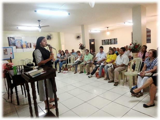 A segunda parte do curso foi ministrada pela Ir. Nivaneide, da comunidade Pequeno Nazareno, no Cristo Redentor. Nossa tão competente religiosa pregou sobre o Evangelho de Lucas, destacando três momentos desse livro da Bíblia: a Promessa, o Cumprimento da Promessa e o Anúncio da promessa que se cumpriu. Temos de ser discípulos missionários a partir do Evangelho de Lucas, e só poderemos cumprir nossa missão se olharmos para a missão de Israel e a missão de Jesus.