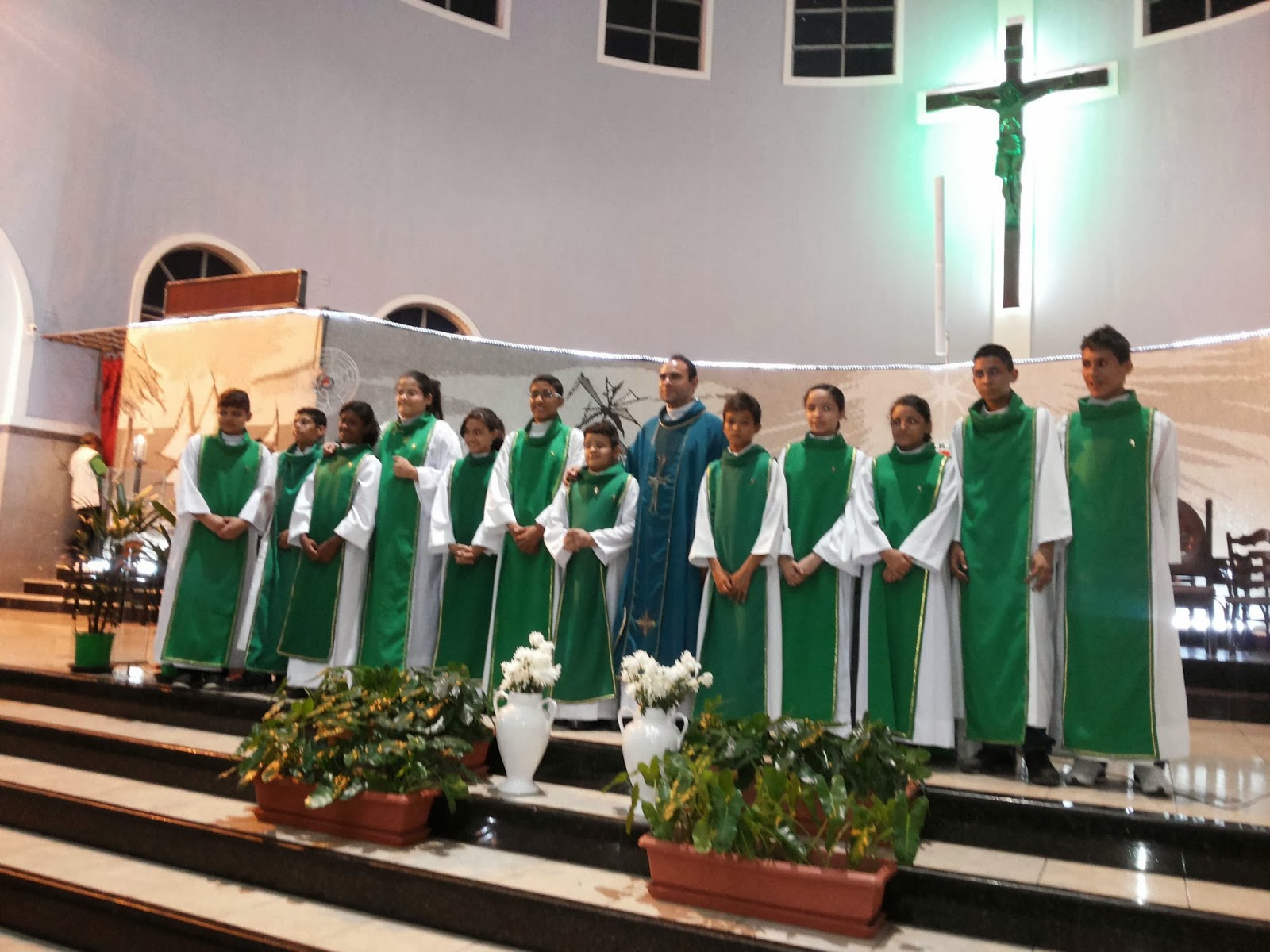 A Paróquia São Benedito realizou no último dia 17/11 (domingo) o Rito de Reinvestidura dos Coroinhas, em missa celebrada pelo nosso pároco, Pe. Jackson Frota, sss. O coordenador do grupo de coroinhas da nossa paróquia – Mateus Xavier – conta atualmente com 12 jovens que auxiliam os nossos padres sacramentinos nas funções do altar. Parabéns a esses pequenos que tão cedo já demonstram amor e zelo pela Eucaristia. Confira abaixo algumas fotos da celebração.