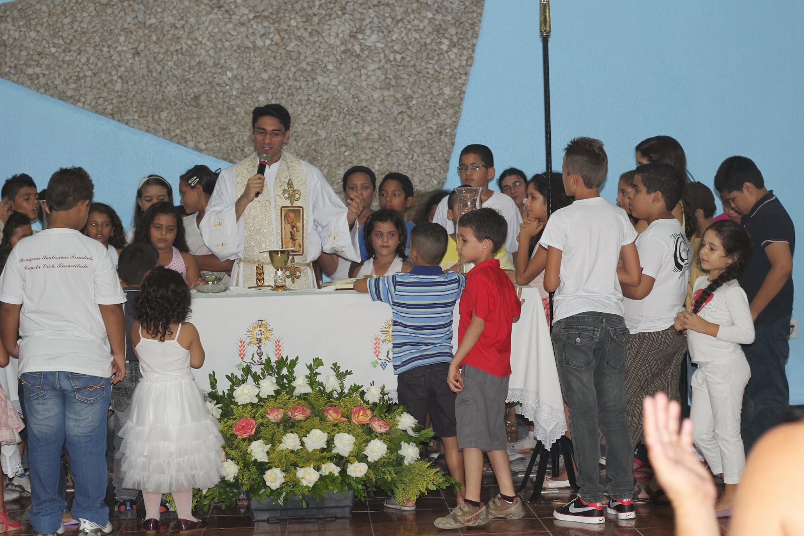 Foi com alegria que Pe. Gleidson reuniu seus familiares e comunidade para celebrar seu primeiro ano de ordenação presbiteral, em uma belíssima celebração eucarística. Durante a celebração, ele lembrou aos presentes o compromisso que cada um deve ter com sua comunidade eucarística, como também o de defender a vida humana de todas as formas, seja na defesa da natureza ou do próprio homem. Um momento marcante da celebração foi quando Pe. Gleidson reuniu as crianças presentes para rezar com elas pela paz.