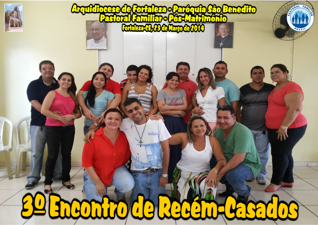 Foi realizado no último domingo (dia 23) o 3º Encontro de Recém-Casados, pelo setor pós-matrimonial da Pastoral Familiar da Paróquia São Benedito, com o tema “As dificuldades nos primeiros anos de casados”. A manhã contou com momentos de oração e adoração, formação, louvor e troca de experiências de vida. Que os casais Roberto e Júlia, Simonal e Raquel, Júnior e Amanda, Herbster e Lyanna, Denilson e Verônica, Pimentel e Cristina, Júnior e Cláudia, Israel e Lidiane continuem nessa caminhada iniciada em direção à famílias cada vez mais cristãs.