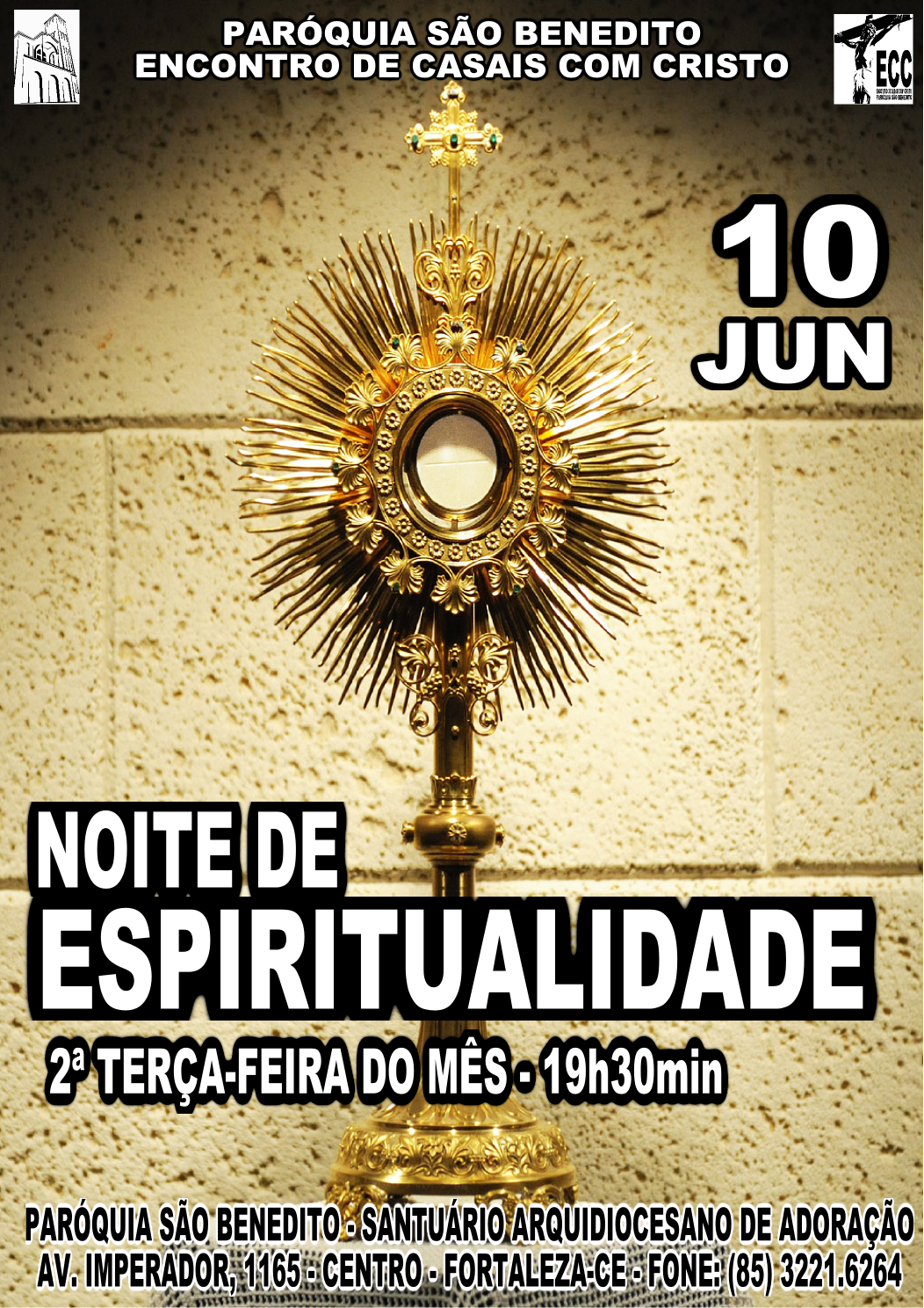 O ECC – Encontro de Casais com Cristo – da Paróquia São Benedito estará realizando amanhã (dia 10) a Noite de Espiritualidade deste mês de Junho. A Noite de Espiritualidade terá início às 19h30min com o Terço da Família. Venha participar deste momento de Adoração ao Santíssimo Sacramento. Todos são convidados!